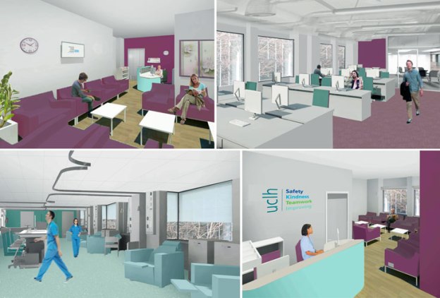 Scott Tallon Walker Architects are pleased to announce the successful completion of a new purpose built research facility for UCLH. The NIHR UCLH Clinical Research Facility (CRF) is a facility dedicated to experimental medicine and clinical research. CRF have moved from their previous home in the A&E department of the main hospital to the 4th floor of 170 Tottenham Court Road, a 2 minute walk away. The newly remodelled space provides Clinical space, a 9 bedded bay, 7 clinical rooms, 2 single rooms with en-suites, a laboratory, a dispensing pharmacy and working space for specialist clinical and administrative staff.